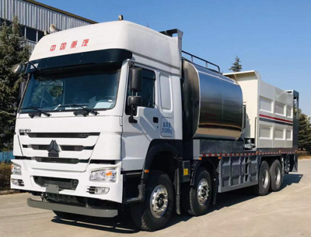 LT0812型同步碎石封層車主要有底盤、瀝青灑布系統(tǒng)、石屑撒布系統(tǒng)、氣路系統(tǒng)、水路系統(tǒng)、控制系統(tǒng)、測速系統(tǒng)、動力系統(tǒng)組成。