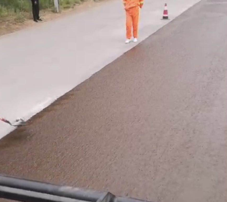 (1)防水層是稀漿封層的話用乳化瀝青采用稀漿封層機進(jìn)行攤鋪施工。
